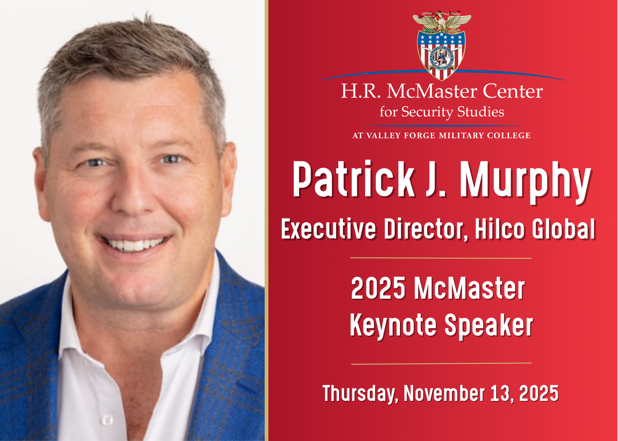 Valley Forge Military College is pleased to announce that the Honorable Patrick J. Murphy, an accomplished attorney, politician, media personality, and the Executive Director of Hilco Global’s Geopolitical Unit, will …