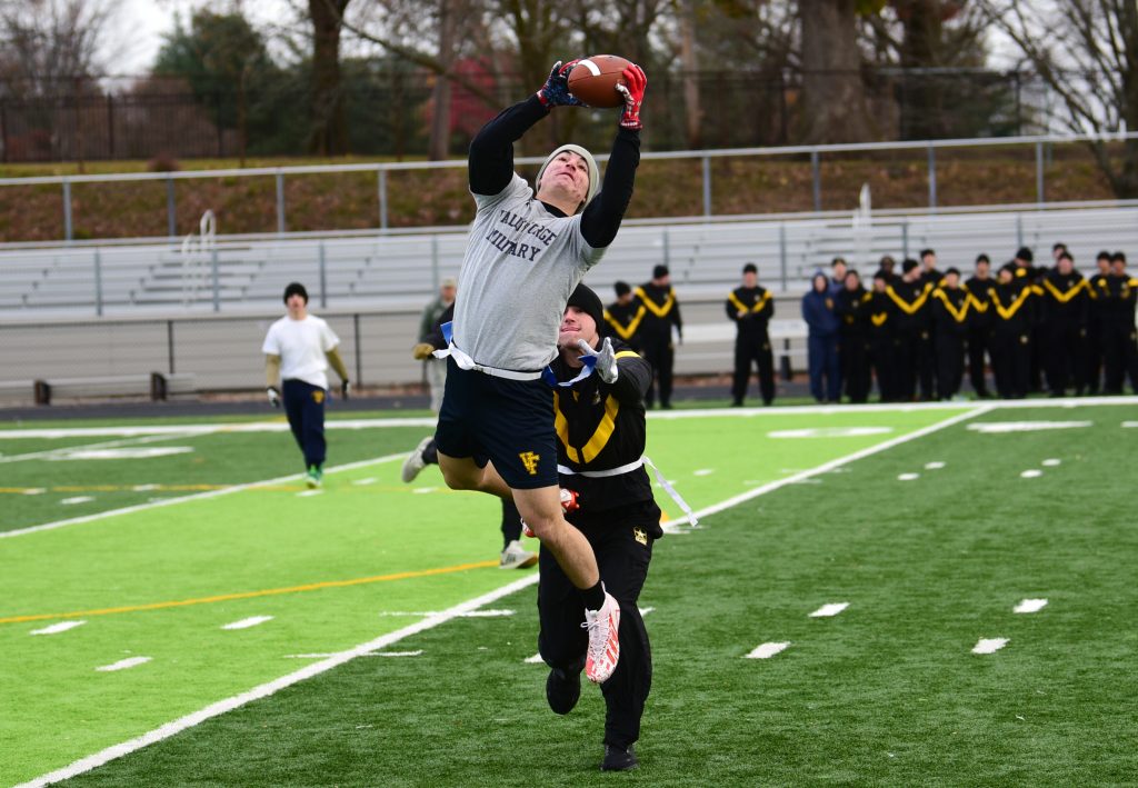 In addition, the college’s competitive intramural program engages all students in the annual pursuit of the Provost’s Cup, fostering both camaraderie and spirited competition. Companies face a diverse array of challenges, including marching, running, climbing, water survival, obstacle races, flag football, ultimate frisbee, creative writing, and art.