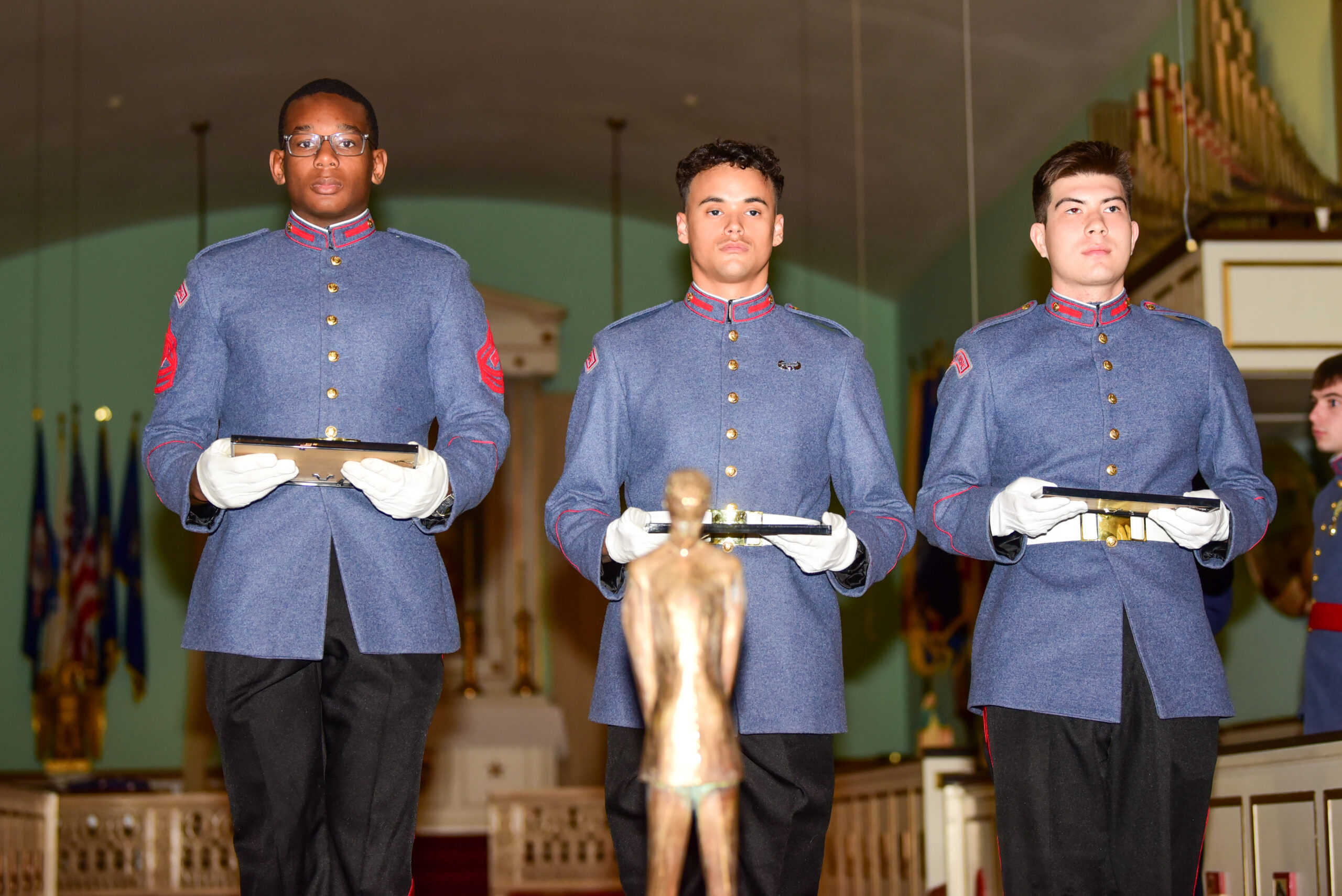 Three Valley Forge Military College cadets were recognized with the White Star Award on Thursday, November 13, 2025 during the McMaster Speaker Series in the Chapel of St. Cornelius the Centurion.